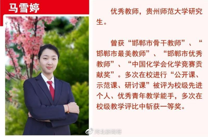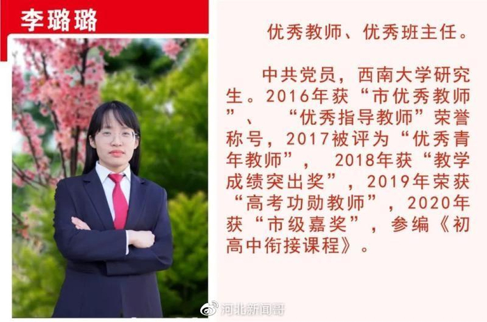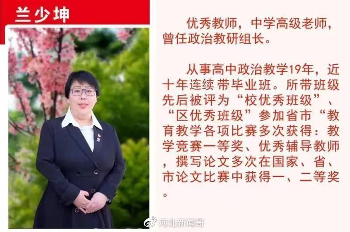 在正定中学任教41年,正高级教师,全国学科名师,河北省骨干教师、十大师德标兵,石家庄市“名师工程”骨干教师,石家庄市专业技术拔尖人才,全国第五届中学物理教学大赛二等奖,河北省物理教学大赛第一名,河北省教学成果三等奖。