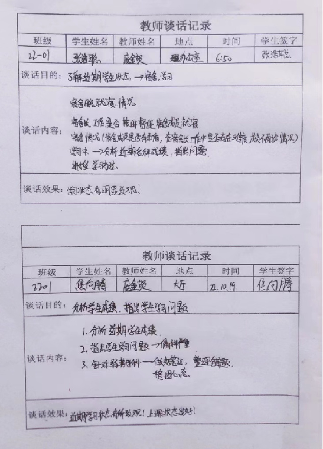 正副两个班主任督促落实日常学习任务。