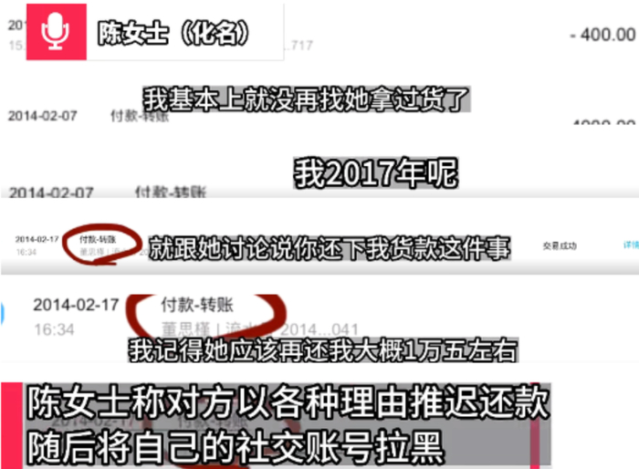 这个时候,陈女士找闺蜜董小姐找货款账,然而难上加难。