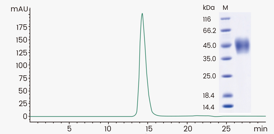 HPLC和SDS-PAGE检测结果:蛋白纯度>95%