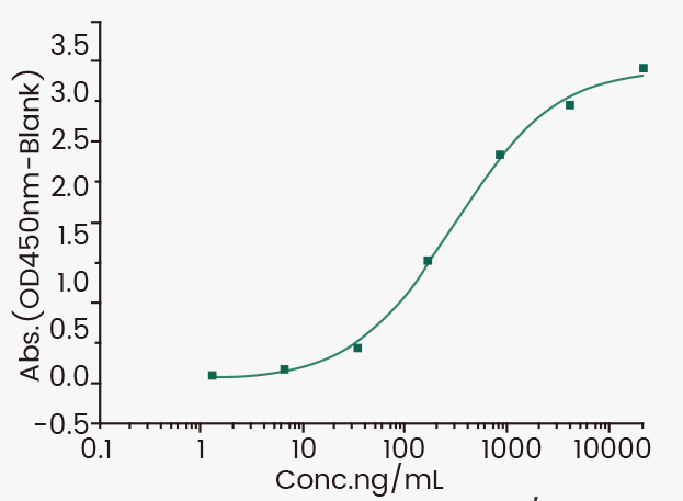 ELISA检测结果:EC50 is 150-450 ng/mL.