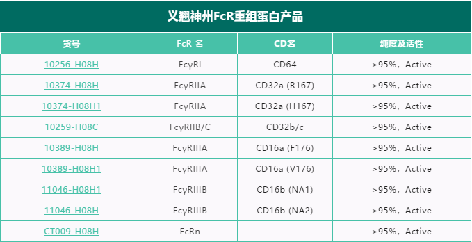 义翘神州作为国内生物试剂的龙头企业,提供FcR 精品蛋白,全面支持抗体药物开发。