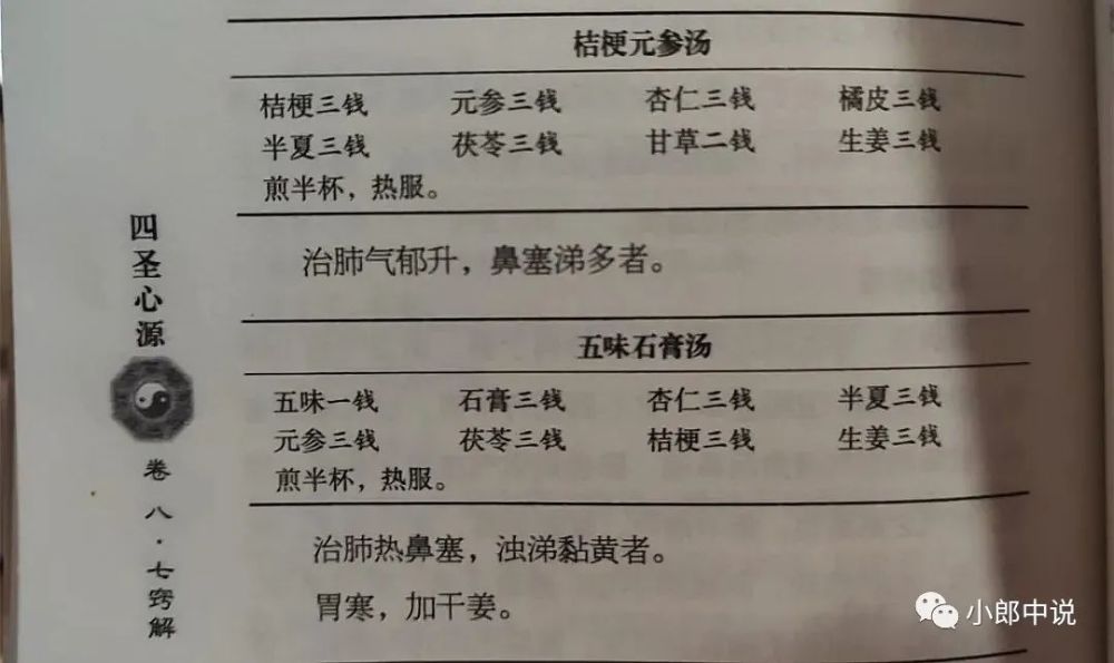 最初小郎中看到这个方子的时候并没有在意,为什么呢?中医治疗鼻炎大多使用宣通开窍之类的中药,比如说苍耳子、白芷、辛夷等,而以上几味药桔梗、杏仁、橘皮、半夏看起来更像是止咳化痰的,就这普通的八味药怎么可能治疗顽固的鼻炎?