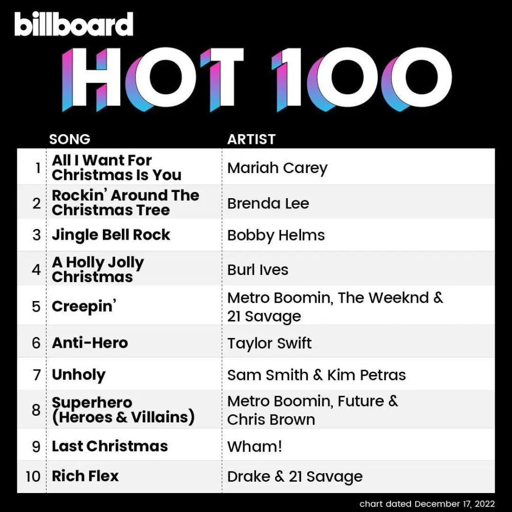 牛姐的神曲连续4年在12月冲回Billboard榜首,连长期稳占第一的霉霉也要腾地。