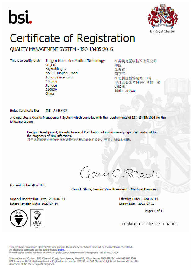 ISO 13485 BSI认证证书
