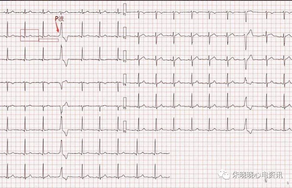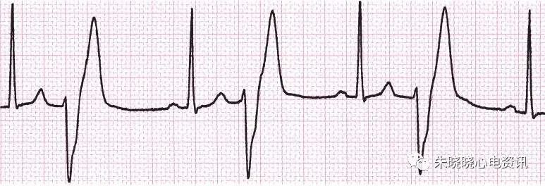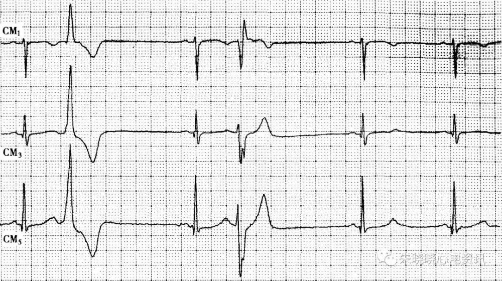 窦性心律时,梗死心电图不典型,或大致正常心电图。而发生的室性早搏显示出梗死性Q波,损伤型ST段改变和T波演变。