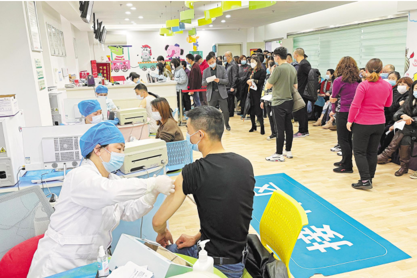 3月16日,武汉市武昌区徐家棚街社区卫生服务中心,市民踊跃接种新冠疫苗。(湖北日报全媒记者 李溪 摄)