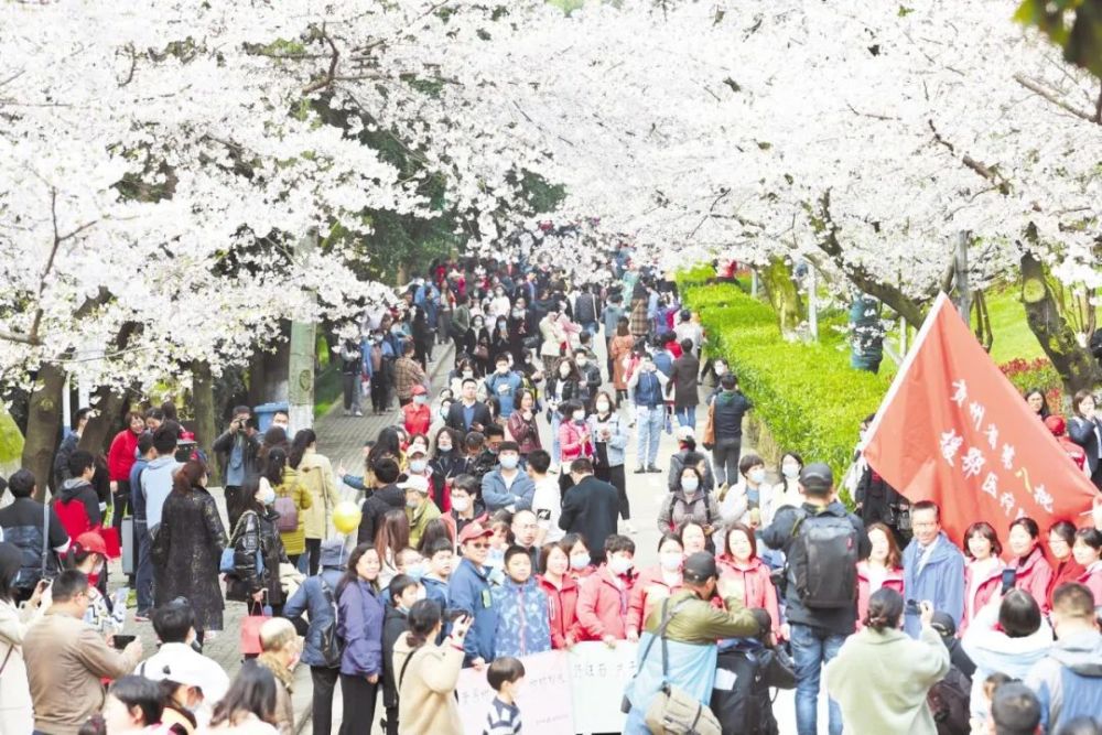 人气火爆,外地游客越来越多。3月20日至21日,东湖樱花园游客量达11.5万人次,约六成为外地游客。蔡甸花博汇景区一季度接待游客量超50万人次,外地游客占比45%,几乎每天都有河南、江西、沈阳等地旅游团来到园区,最多时,一天接待的外地团队人数超过7000人。