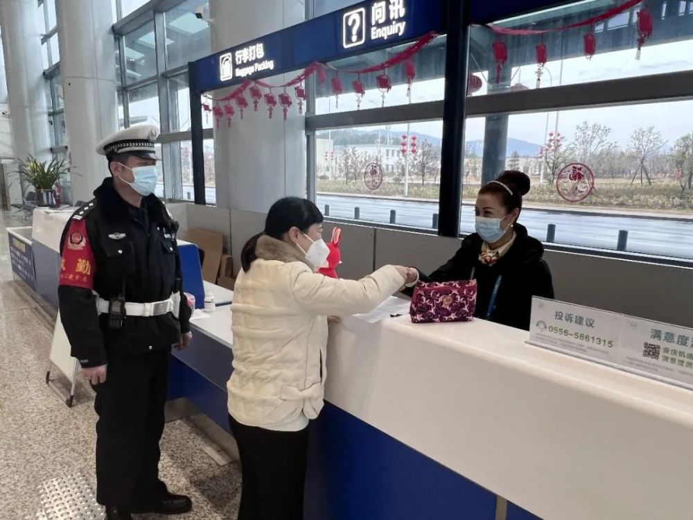 2023年1月20日上午,一名旅客在安庆机场女洗手间发现了一个手提包,并移交给了行查工作人员李骞。李骞随即立即上报了机场当班主任张娜娜,张娜娜与问询柜台工作人员胡欣,当场清点包内物品并作登记,考虑到包内有大量现金和身份证件,旅客应该十分着急。胡欣立即向机场公安上报并询问能否协助我们寻找失主。经过机场公安的帮助,很快联系到了丢失物品的旅客。旅客赶到机场后情绪十分激动,对安庆机场工作人员拾金不昧的精神及热心为旅客着想的工作态度深深感动,但胡欣说“作为安庆机场一名员工,这是我应该做的,我愿坚守在自己的岗位上守护旅客安心出行,享受“皖美服务”。