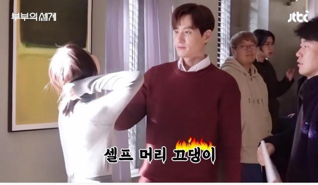家暴"名场面"相信各位都看得惊心动魄吧?很多人应该恨不得对"渣男"李泰伍拳打脚踢来泄愤,剧中李泰伍和妻子池圣雨因儿子而起了争执,圣雨不断言语刺激丈夫,让他对自己大打出手。如此惊心动魄的画面,在镜头背后似乎没有这么沉重,演员们也是在打打闹闹、十分融洽的气氛中完成镜头拍摄。敬业的演员金喜爱,还现场指导朴海俊如何抓自己的头发,而一旁的朴海俊则对要暴力对待金喜爱感到抱歉,金喜爱大方地说:"没关系,没关系,舒心地做吧!"