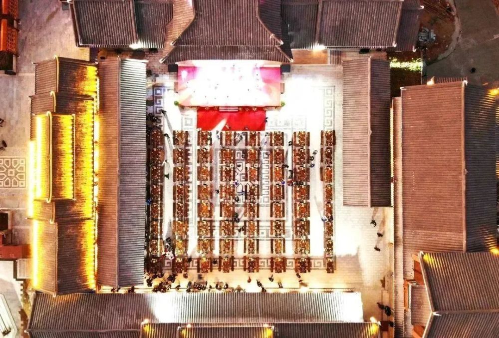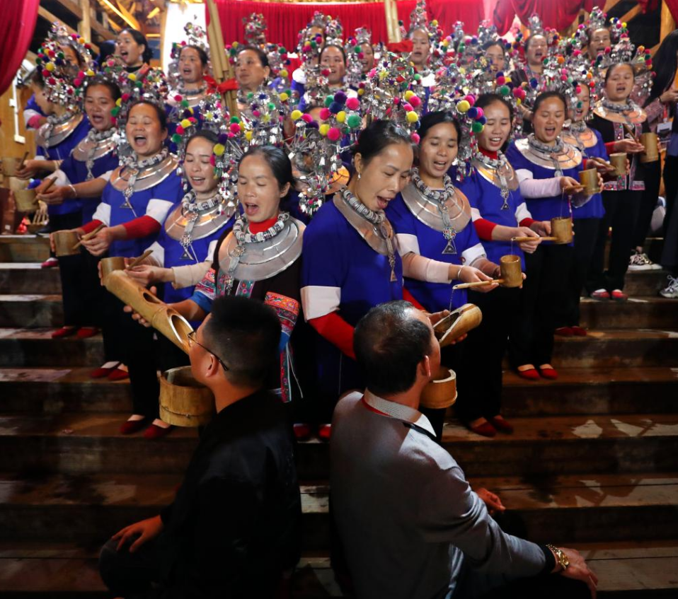 众人入席前,先由款师唱祝酒歌,讲猪、鱼、酒的来源等款词。入席后,主客双方围着长长的宴席踏歌起舞,喝交杯酒和转转酒,不时以一问一答的酒歌考量对方的智慧。