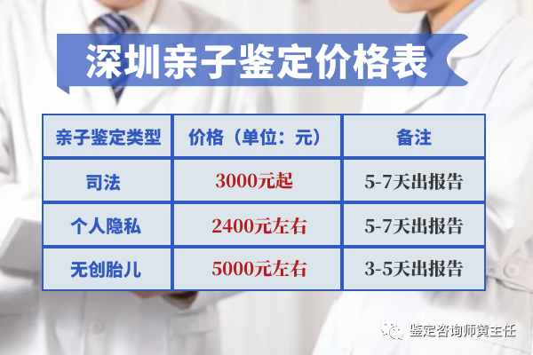 深圳个人隐私亲子鉴定价格:2000元-2400元(两份鉴定样本)3-7天出具鉴定报告