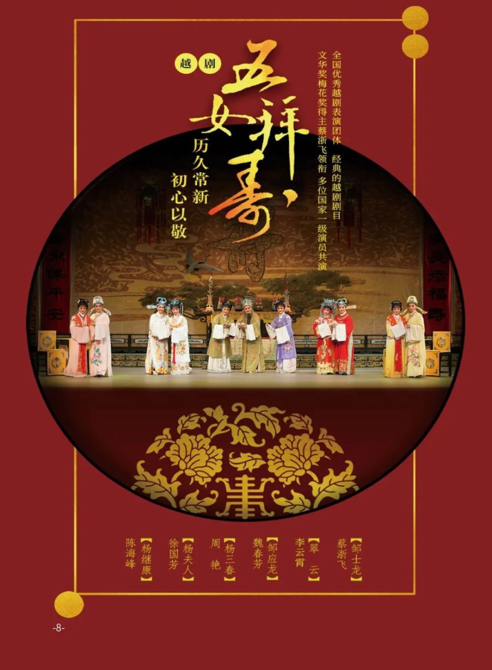 “浙江小百花”新任团长蔡浙飞将携带中生代、新生代“小百花”主力来汉,以更加年轻、朝气的阵容重新诠释这部塑造了丰富人物形象,传达了中国传统孔孟之礼,冲突激烈、高潮迭起的越剧多行当、多流派、多人物的经典之作《五女拜寿》。