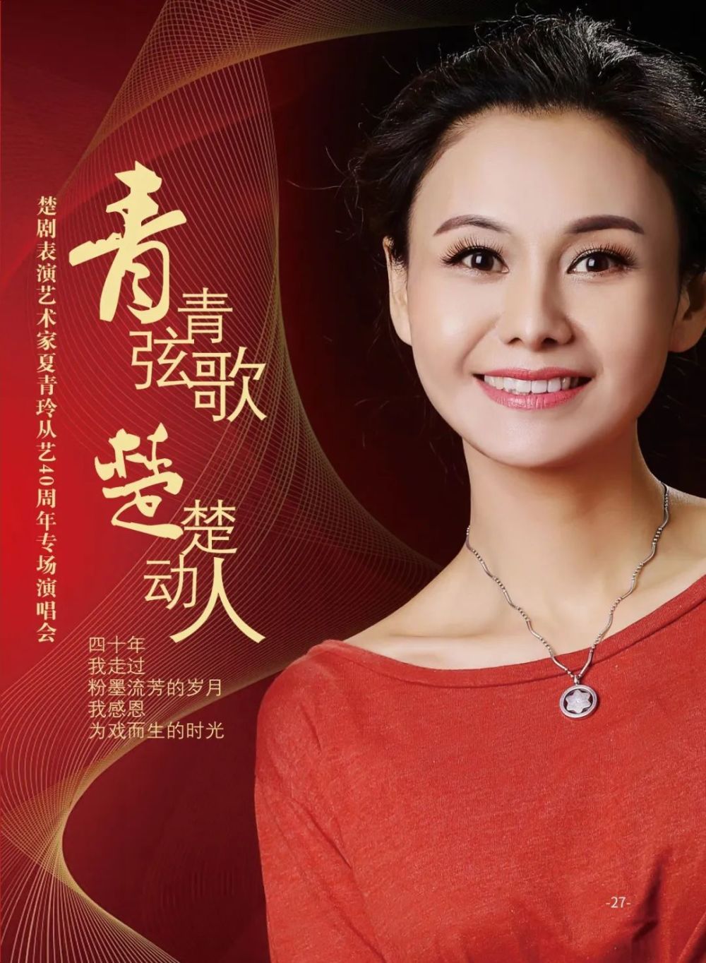 闭幕演出《青青弦歌 楚楚动人——楚剧表演艺术家夏青玲从艺40周年专场演唱会》,以楚剧领军人物夏青玲艺术成就为主线,用经典唱段勾勒出她40年从艺生涯的成长历程。一批在夏青玲关心下成长起来的优秀青年演员,也将在演唱会上登台献唱。