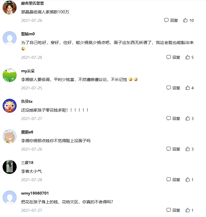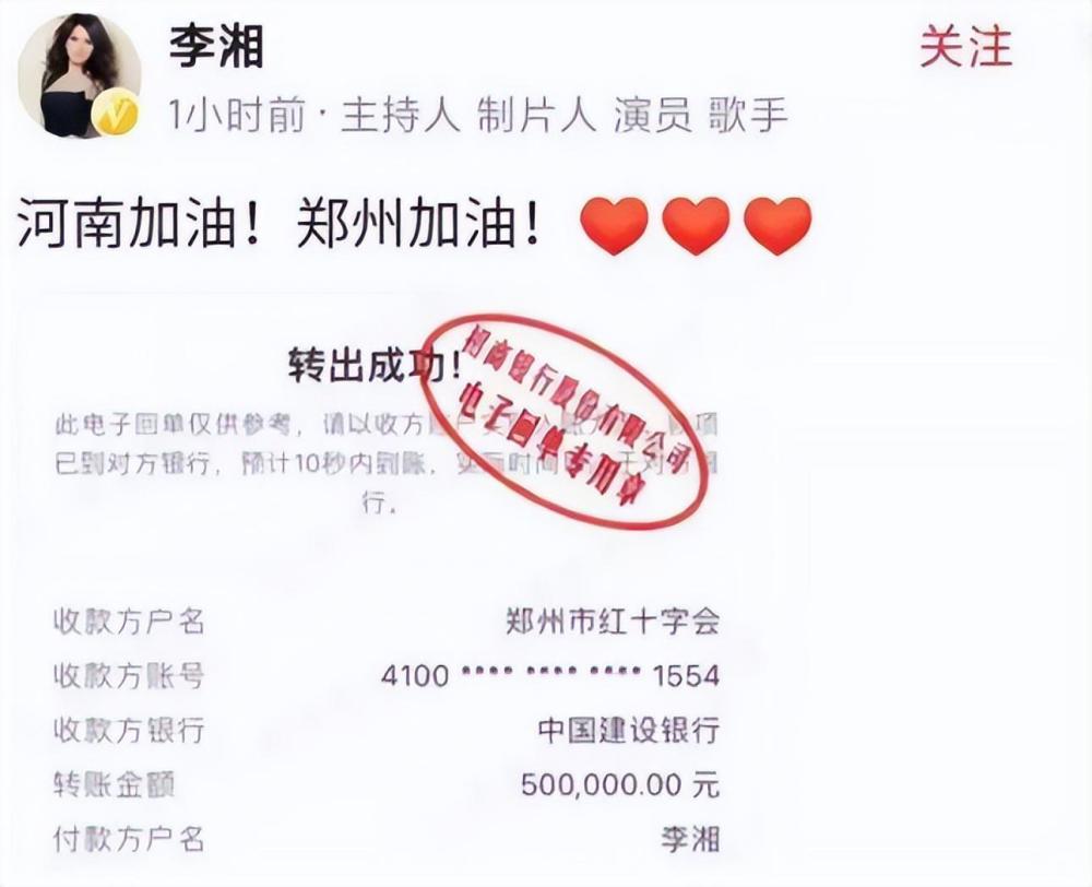 在大灾面前,别的明星捐款数额都是百万起步,但是李湘却只捐了50万。