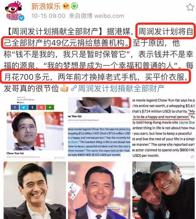 不过,谁也没有想到,“铁公鸡”周润发竟然在接受采访时表示: