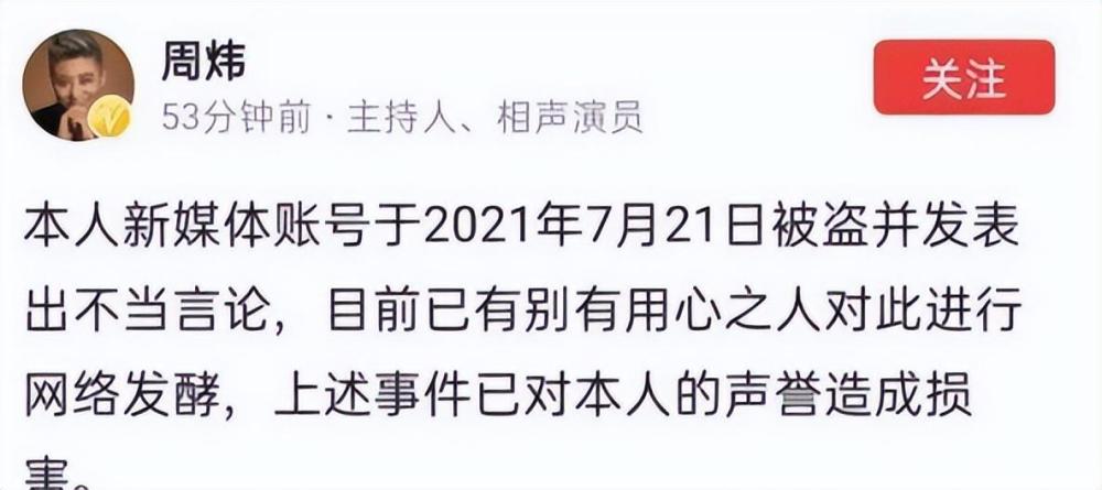 网友很快开始大做文章,周炜顶不住舆论压力,竟然以“账号被盗”为由,向公众公开致歉。