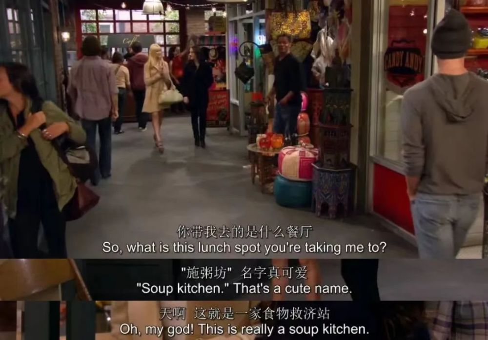 美剧《破产姐妹》中,穷困潦倒的主角二人组来救济站吃饭