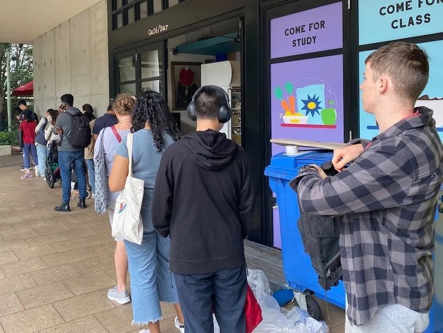 新南威尔士大学学生正在排队领取免费食物。图源:ABC News