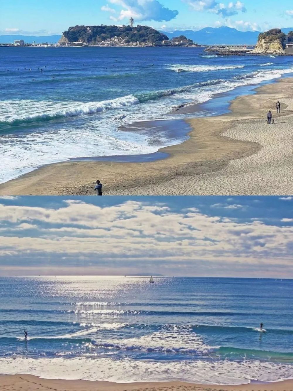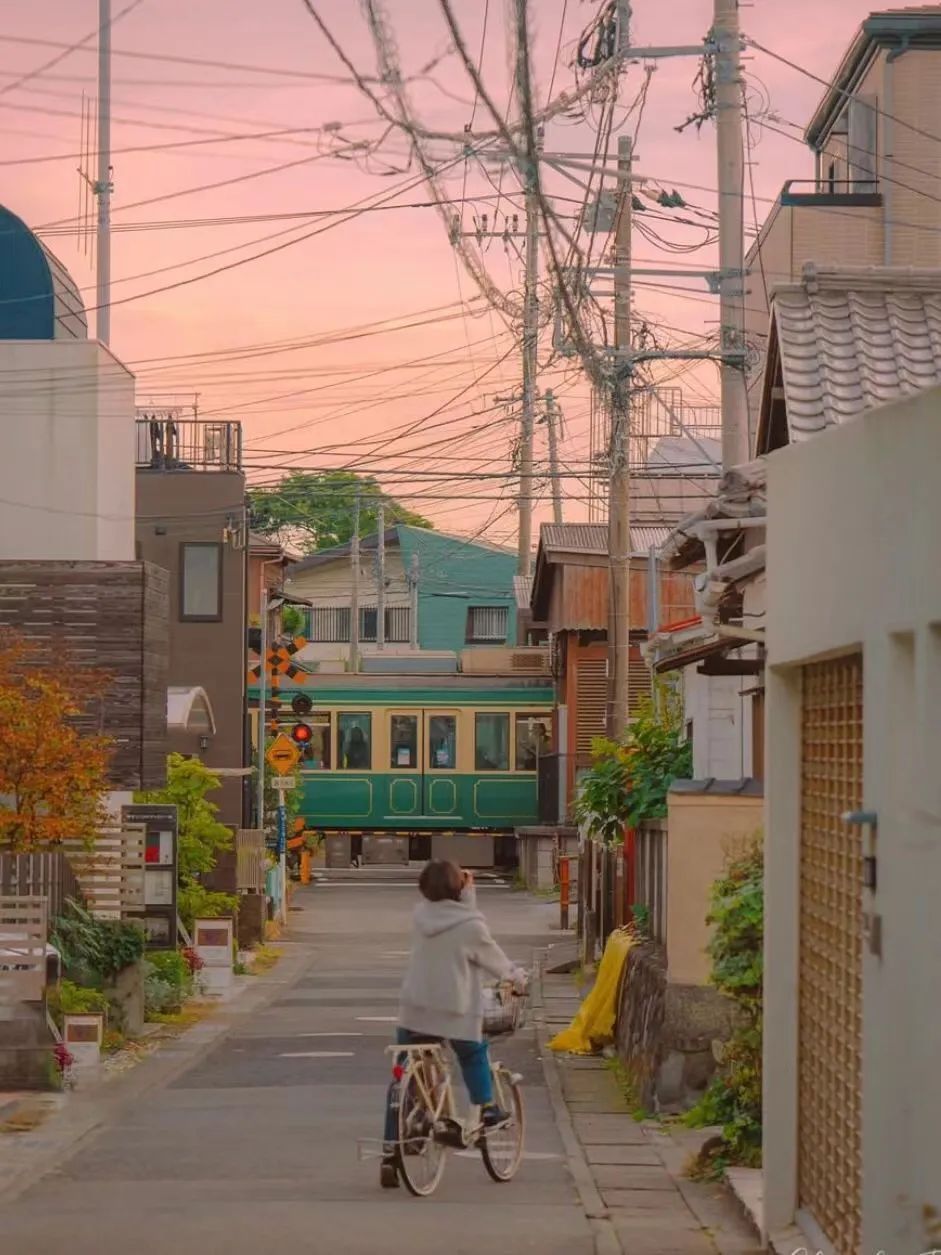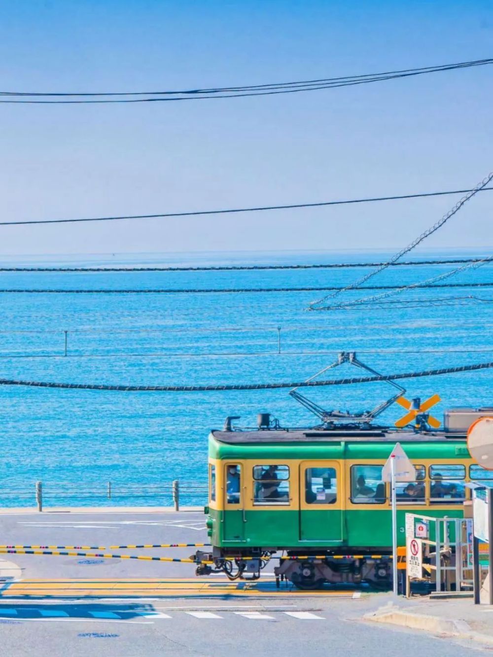 当江之岛电车驶过充满烟火气的的居民区,湘南海岸翻腾的浪花伴着沿岸开过的车辆,仿佛下一秒就能看见骑行扮酷的流川枫正从海边骑过,樱木花道正挥手朝对岸打招呼...