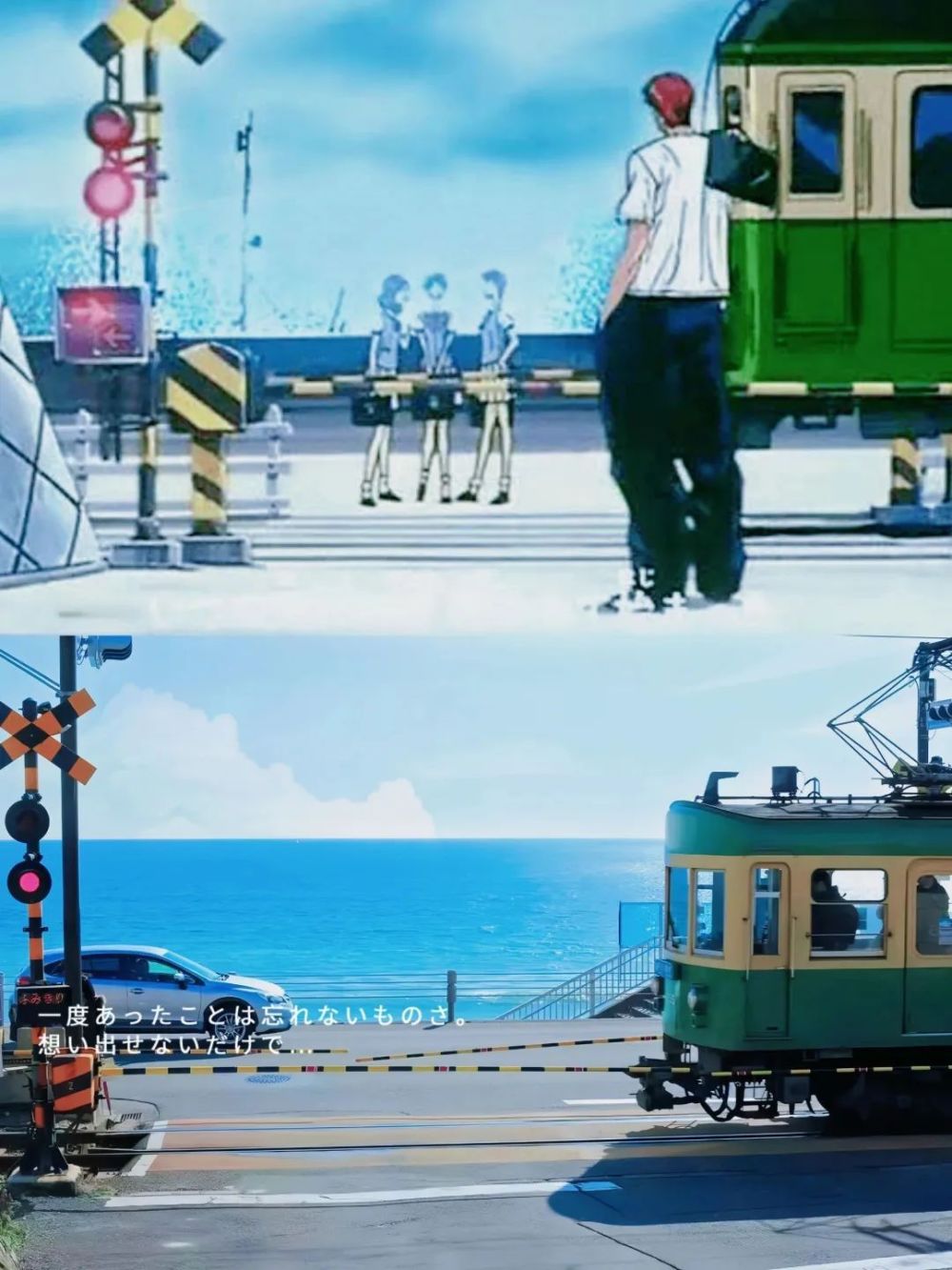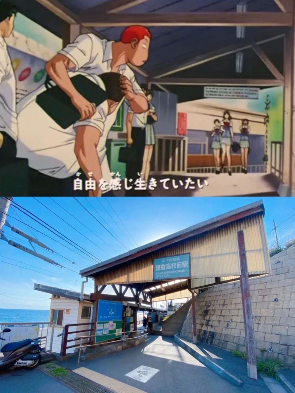 镰仓高校前站,它是动漫里陵南高校前站的现实取景地。当樱木和樱木军团在站台打闹时,晴子慢慢走来……