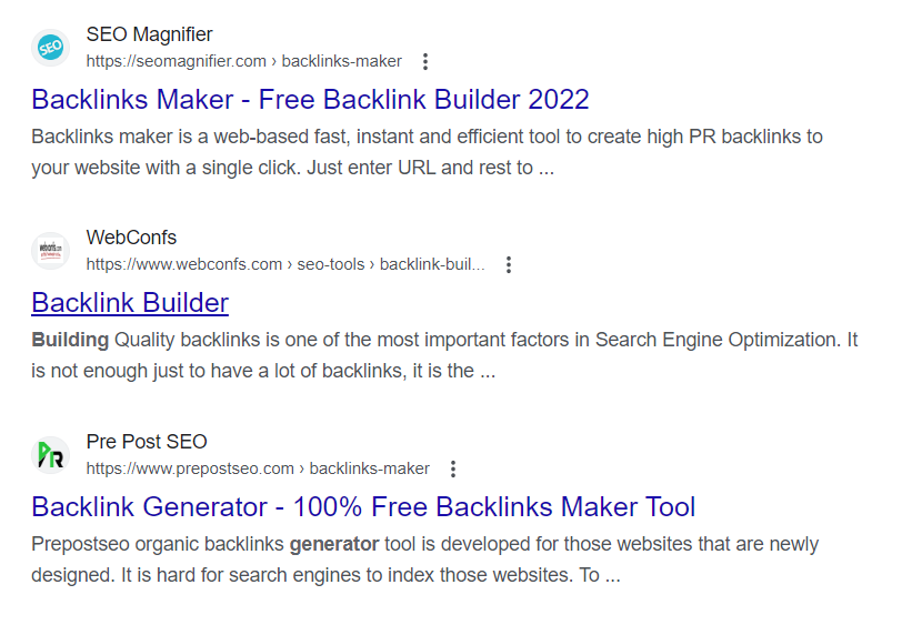 当然了,关于反链建设,Mike还有一些“野路子”,可以实现弯道超车,那就是“付诸工具”——在谷歌搜索 Backlink Builder 或 Backlink Generator 或 Backlink Maker 等类似这样的关键词,应该能找到很多工具,一些是免费的,一些是付费的。