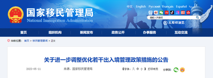 据国家移民管理局消息自5月15日起进一步调整优化出入境管理政策措施