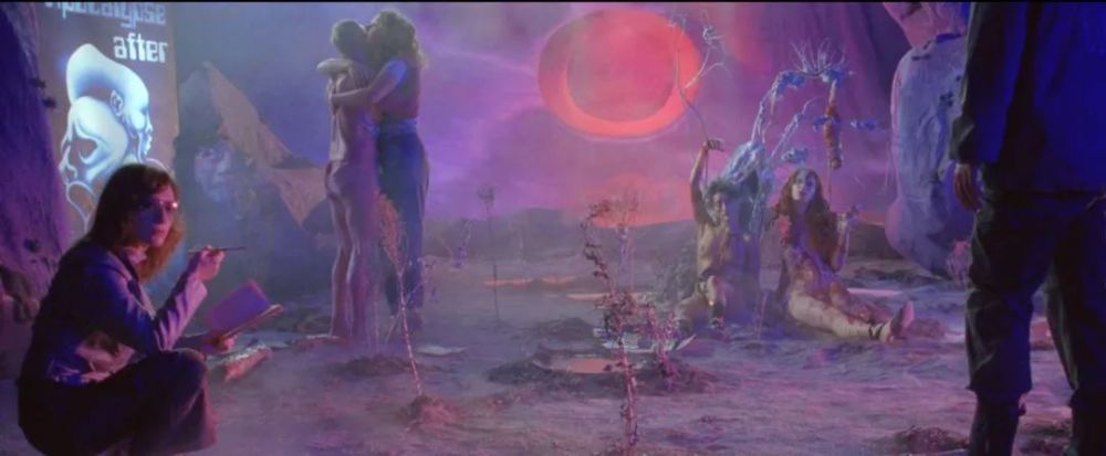 贝特朗:早先我延续《后启示录》(Ultra Pulpe,2018)的配乐风格,为这部片子写了几首摇滚和流行歌剧。到真正立项时,我请来了皮埃尔·德斯普拉茨(Pierre Desprats),他是我所有电影的作曲家,但我要求他忘记我们之前合作过的一切,重新寻找以打击乐为基础的声音,让整体音调更干燥,更具明显倾向以区分各个时代。我让他参考伯格曼《假面》(Persona,1966)的序曲、伯纳德·赫尔曼为希区柯克作的配乐、尼诺·罗塔在《爱情神话》(Satyricon,1969)中的民族拼贴曲、《红番区》(Rumble in the Bronx,1995)中武当帮(Wu Tang Clan)风格的说唱、里奇·霍金(Plastikman)作品里的电子味儿与冰冷感以及芭芭拉·卡洛蒂(Barbara Carlotti)演唱的保罗·安卡(Paul Anka)风格的歌曲;或者更经典一些,迈克尔·尼曼(Michael Nyman)对亨利·普尔塞尔(Henry Purcell)极简主义风格的再演绎。皮埃尔虽屡屡感到困惑,成曲却富有独特而强烈的效果。