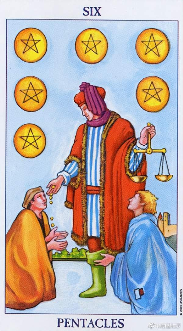 分析:星币六牌面上的人正在给与他人帮助,很直接的表达了你的娃拥有为人奉献的精神!他对于帮助他人,为人服务这块比较感兴趣也比较有天赋。在正确的引导下,他很容易走上慈善或者帮助人的工作中(比如塔罗师、灵性疗愈师就是这类哦)。虽然他会有一定的挣钱,金钱方面的天赋,但这个天赋更多是为他达成帮助他人的意愿,这或许就是他今生的“使命”吧。不过你不用担心,他的帮助也是有度的,并不会无限制,不会为了他人牺牲自己,这对他来讲只是双赢的局面。不用担心自家娃为了别人,伤了自己哈。
