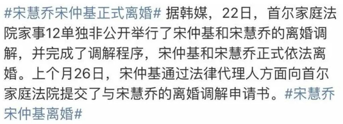 离婚还是宋仲基单方面提出起诉离婚,虽然没有说具体原因,但从双方发文来看,宋仲基看起来怨气满满。