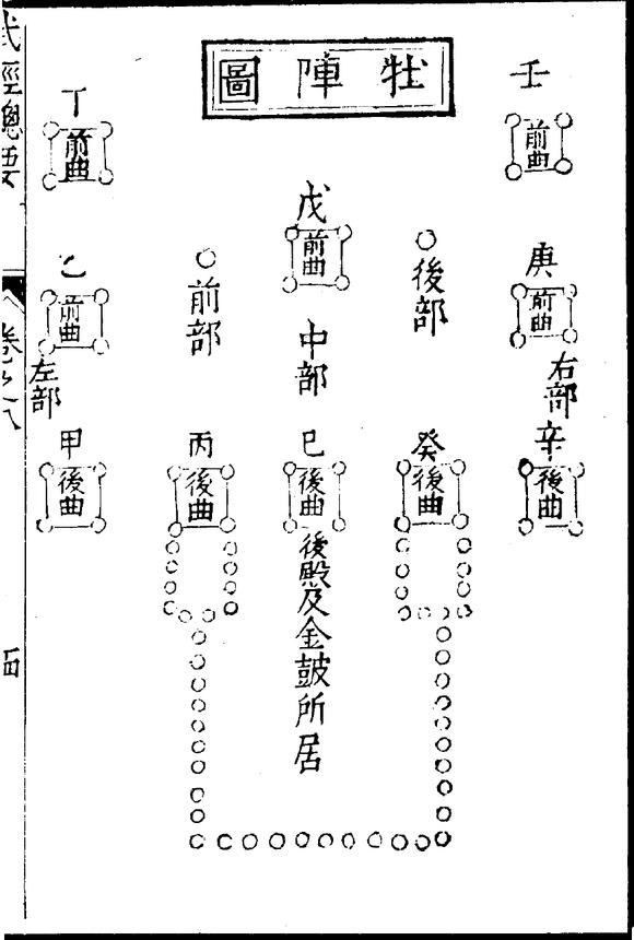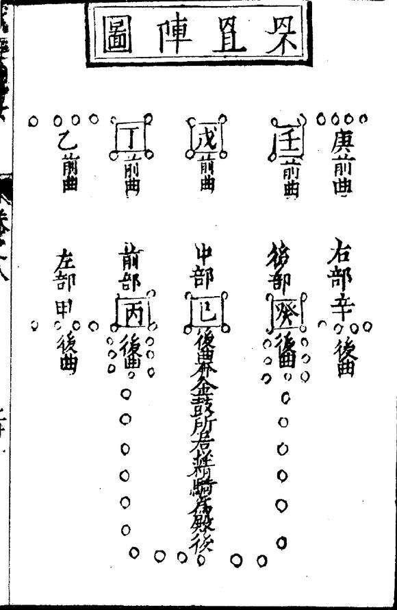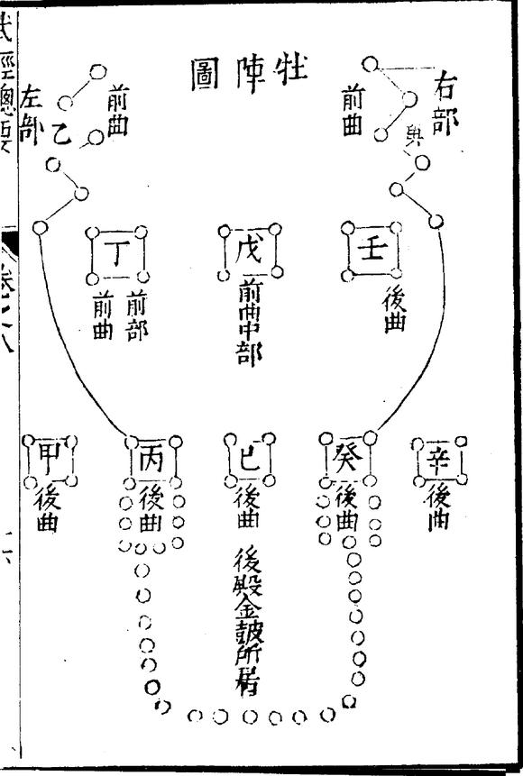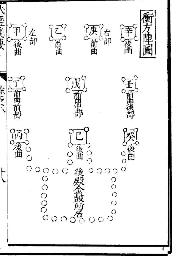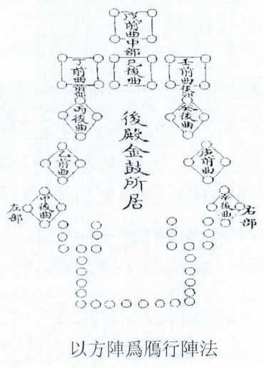 这种阵型在《大唐卫公李靖兵法》里能够找到类似,是冲锋在前的精锐部队所用。特别的是执旗者有两人,估计是旗手既重要又危险,所以多一个做后备。