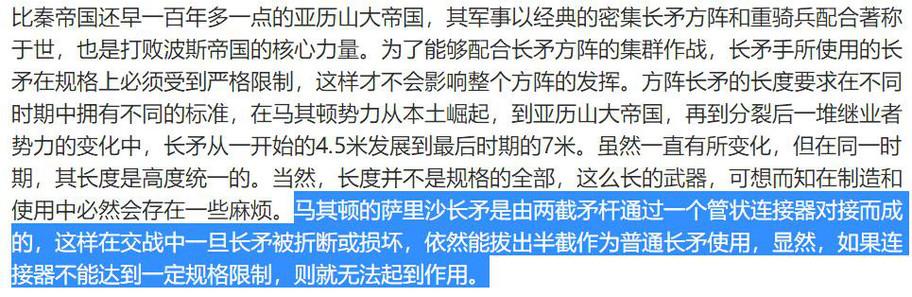 看看这篇文章,亚历山大的长矛阵真的存在过吗?看他长矛的连接器,那么短的一截管子,能有多大的接合力量?