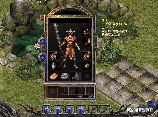 对于百区的大战士玩家而言,拥有一把攻37裁决之杖那是必须的,而在攻37的基础上能搭配运九套就更不得了了,如上图所示,这把攻37裁决之杖加了5点幸运值,在百区的高幸运项链搭配下还是可以达到运九套的程度的。
