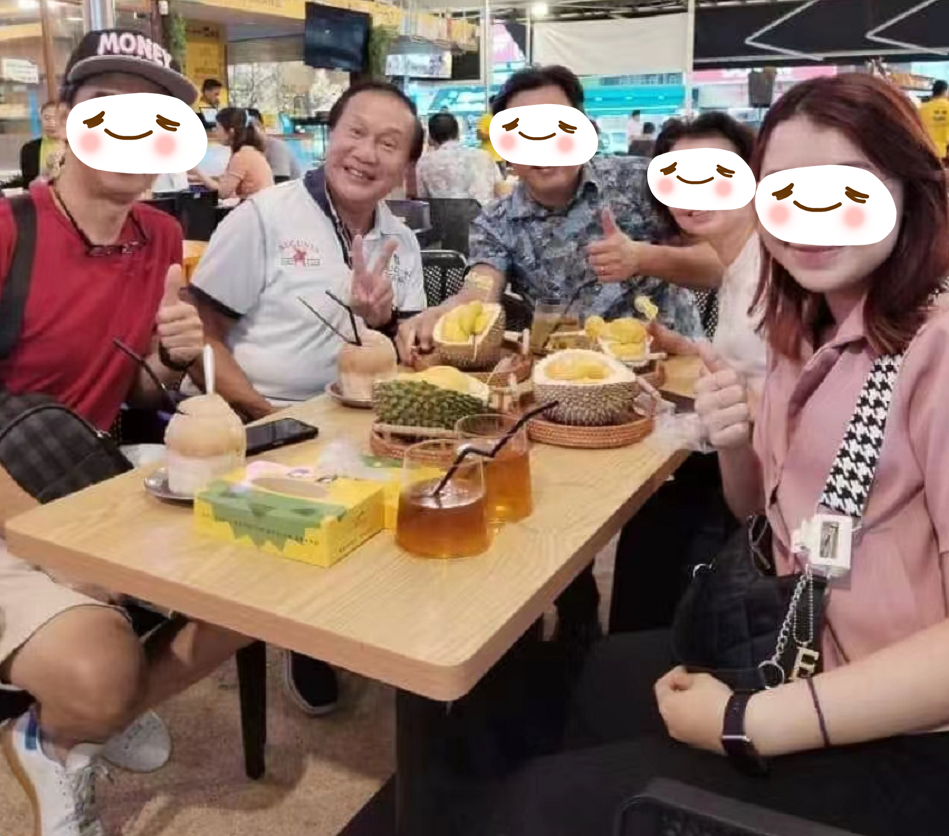 能与大家一起品尝榴莲大餐,他的心情大好,展露笑颜,相信此趟旅行他玩得很尽兴。