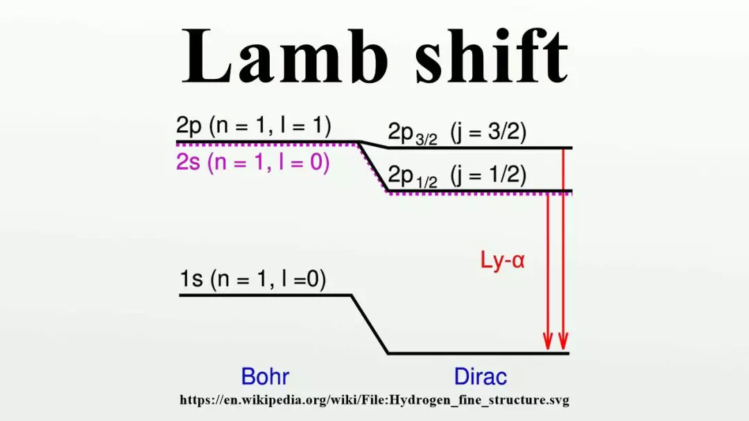 当一个孤立的氢原子存在于看似空荡的空间里时,原子中心的质子会吸引真空中一闪而逝的的电子,同时排斥真空中的正电子,这会使得它的电荷量微微减少。随着质子的电荷量减少,氢原子轨道上的电子能(并非真空中的电子)也会稍有改变,这一过程称为兰姆位移(the Lamb shift),因1947年首次测量出这一能量差值的物理学家威利斯·兰姆(Willis Lamb)而得名。测量出的能量位移量很小,只有3/108。但它和理论中那复杂的公式高度吻合——这是一次对有关真空的量子理论的精彩验证。人类思维得以对真空空间产生如此多的了解,这是一场伟大的胜利。