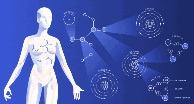 利维坦按:我们的身体就像“忒修斯之船”一样,体内的大部分细胞每七到十五年便更新一次,从这个意义上说,“你”已经不是“你”了。我们人体大约99%是由氢、碳、氮和氧原子组成的,这就是你和宇宙的深远关系——你体内的氢原子是在宇宙大爆炸中产生的,而碳、氮和氧原子则是由恒星产生的。所以,你可以很诗意地审视你自己:你的指甲有一半都是碳构成的;每一秒,都会有成千上万的不稳定放射性碳原子在你的细胞内和细胞之间爆炸;当你割伤自己时,星星的残骸便撒了出来。你血液中的每个铁原子,帮你的心脏将肺中的氧带到你的细胞,却曾经帮助摧毁一个巨大行星。剧烈的核聚变反应让星星闪耀,也创造了生命的原子元素。