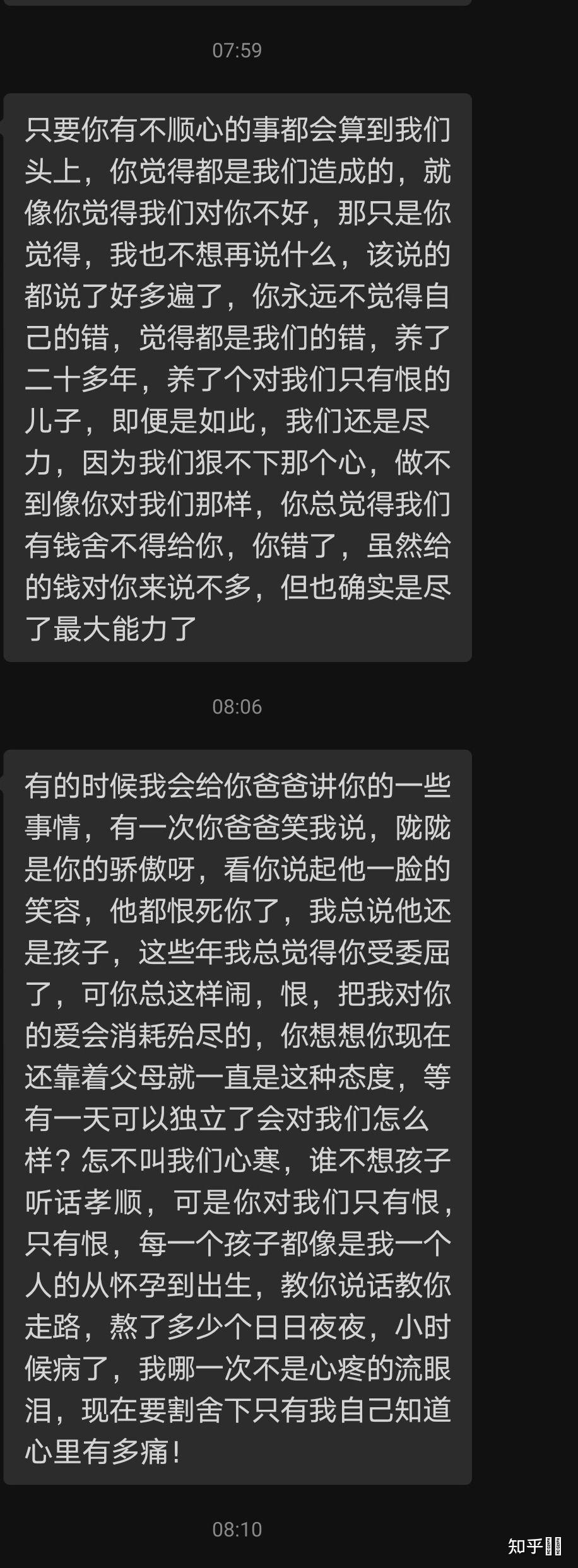 可能是我懂事惯了,成绩还一直可以,从小到大基本没花过他们的钱,中学开始就拿奖学金。以至于他们觉得养孩子似乎不用花钱,更别说成人后。