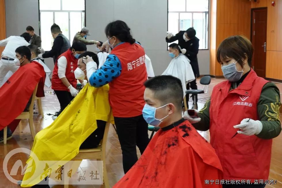 昨日,由南宁市江南区丽英志愿者协会等组成的公益义剪队,走进南宁市公安局南湖分局,为抗疫一线的民警辅警免费剪发,让他们十分高兴和感动。