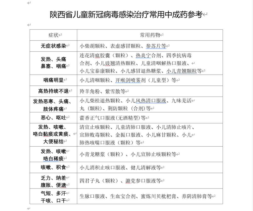12月13日,省卫生健康委、省中医药管理局联合印发陕西省新冠病毒感染中医药治疗方案第四版。第四版的治疗方案对第三版方案进行了优化,分别提出了儿童无症状感染者、轻型、普通型及恢复期感染者的中医辨证论治方案,提供了临床相关症状的常用中成药参考目录,方便广大临床一线医生及感染者参考使用。具体内容如下: