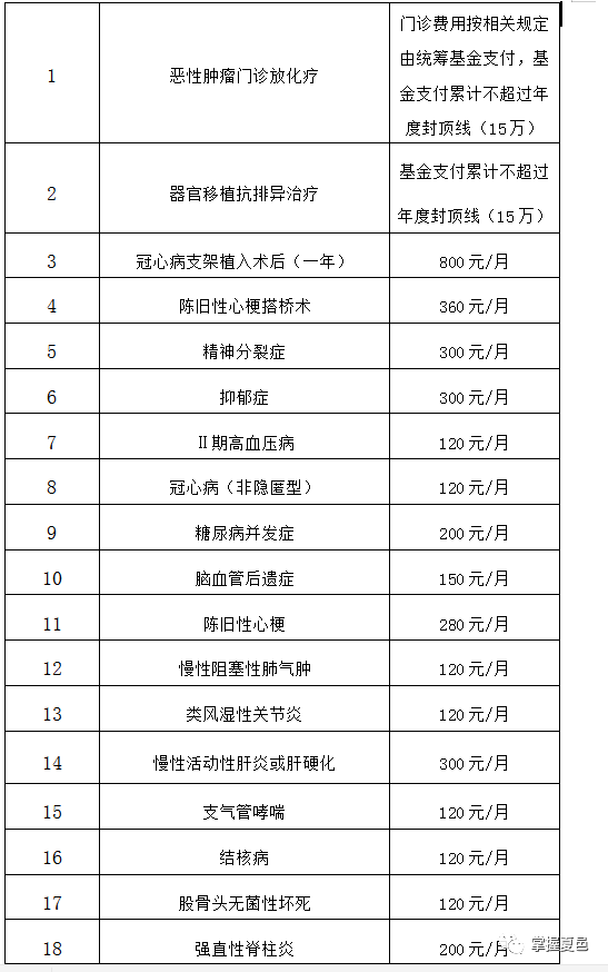 城乡居民医保门诊慢性病病种有哪些?月报销限额是多少?
