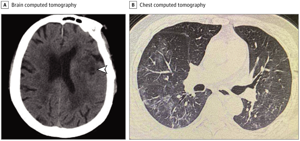 也有部分一开始有发烧和头痛症状,在最初经血常规检测和肺部CT筛查排除COVID-19后被送到神经内科病房。然而,几天后,这部分患者出现了典型的COVID-19症状,如咳嗽、喉痛、淋巴细胞计数、肺CT毛玻璃样阴影。经核酸检测阳性后确诊为COVID-19,最终转到隔离病房。