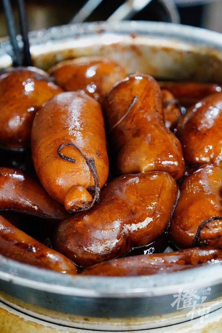 虽然看着油腻,但吃起来完全不会,因为大肠里面的脂肪早就被处理干净了。一口下去,外皮筋道弹牙,内里软糯拉丝,满满的都是糯米带给味蕾的满足,夹杂着一点大肠专属的香味。