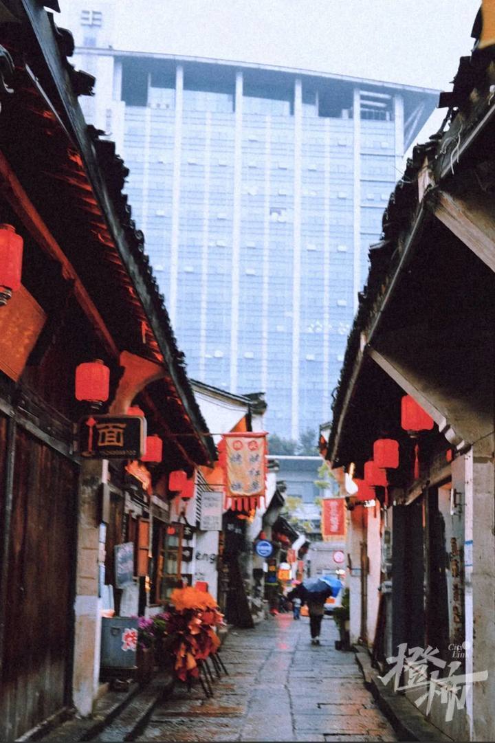 站在老街上,往北面仰头看,是衢州电力局的大楼。钢筋玻璃大楼下的古街,古今对比下产生强烈的视觉冲击,让人顿生时空错乱之感。来衢州如果晚上有时间,强烈推荐来北门街哦。