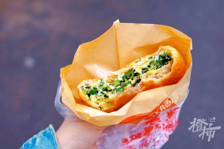 我赶紧打开手里烫烫的鸡蛋馃,咬了一大口,不禁发出满足的轻叹,“这也太香了!”葱香、蛋香、肉香,还带一点点辣,简直就是“爱吃葱人”的福音,香得不要不要的,连我这个平时对葱无感的人也体会到了葱的魅力。口感也是没话说。馅皮很薄,被煎得脆脆的,里面的馅料又很多汁,一口下去香葱爆汁,幸福感爆棚!