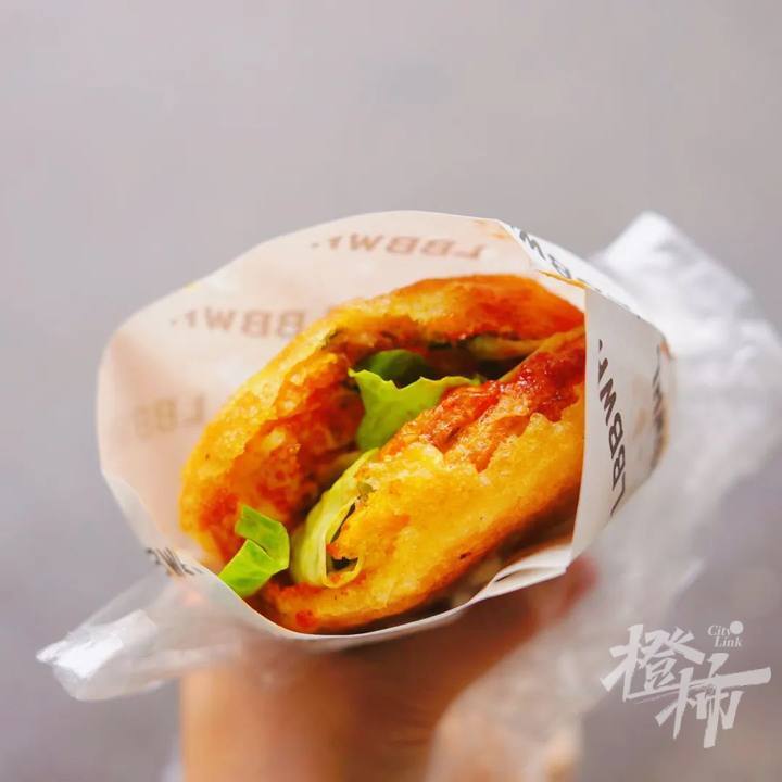 排队过程中观赏鸡蛋汉堡的制作过程挺治愈,金黄的鸡蛋在铁盘上滋滋作响,鸡蛋、肉末、生菜、酱汁……各种馅料依次加上去,视觉冲击感特别强,看着就流口水。