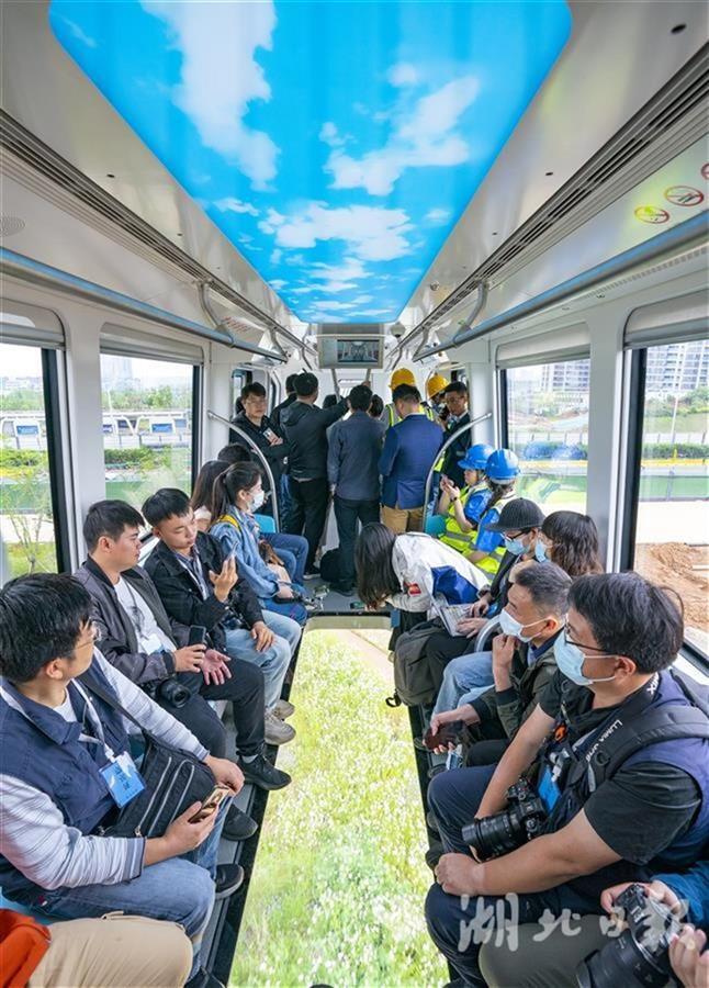 湖北日报讯(记者张真真、林晶、通讯员黄策、肖帆)在空中行驶、可270°观景的光谷空轨,终于要来了。5月11日,光谷空轨举行媒体集中探访和试乘活动,湖北日报全媒记者模拟掌纹购票上车,登上这一“流动的空中观景平台”,感受全自动无人驾驶的乐趣,全程科技感拉满。