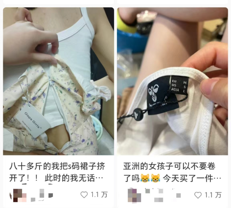 有网友分享自己八十几斤撑开S码裙子的经历,还有网友表示遇到过XL码的裤子腰围只有68厘米,“简直难以置信”。