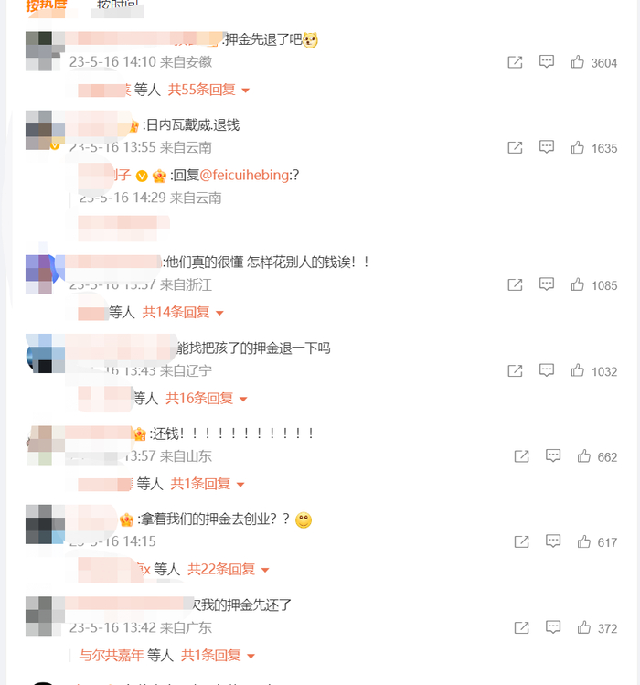 对此,网友纷纷喊话戴威退钱:“押金先退了吧”“退钱”“他们真的很懂,怎样花别人的钱”“拿着我们的押金去创业”......