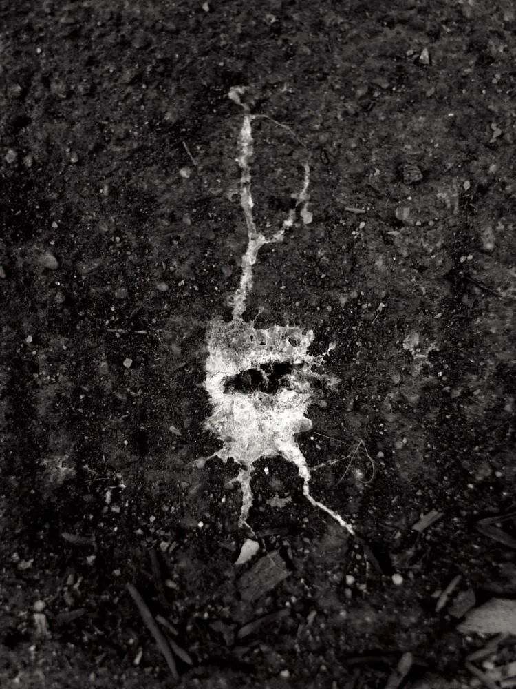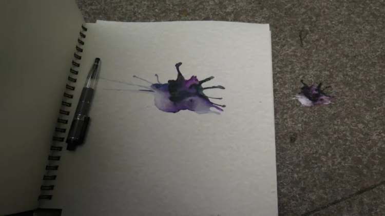 晾晒衣服的间隙,我又在院子周围查看,发现自己每天路过的地方,有着各式各样的鸟粪,我竟从未留意过。这让我一下子来了兴致,还未等本子干透,我就开始继续搜寻地上的鸟粪,把它们画成形态各异的鸟。