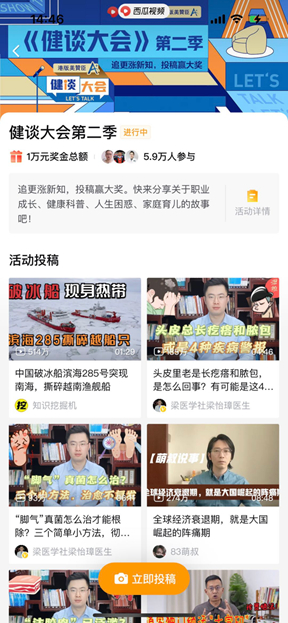 公开资料显示,《健谈大会》是中视频首档鲜活知识类跨界脱口秀,它也是西瓜视频探索健康领域的出色样本。该档节目以热门社会现象为引,用消费者更易接受和理解的脱口秀方式,来解读其中涉及的健康问题、科普健康知识。